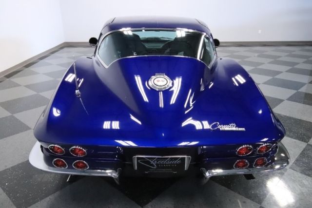 This 1965 Chevrolet Corvette keeps the iconic C2 silhouette, but it has the modern 425+ hp LS3 engine. Plus, take the time to look over the custom paint, upgraded interior, and performance suspension. So once you realize how amazing this build is, make room in your trophy case. Even from just a quick glance everyone will know this Sting Ray is special. The deep blue paint takes advantage of the most modern clearcoat practices so you get a...deep sparkle that's also so slippery you'll swear it was applied with baby oil. And there's sliver metallic undertone that not only looks great when the sunshine hits it, but it's also the ideal match for the silver paint on the Stinger hood. The final touch is a solid investment in the body to make sure this Sting Ray is looking crisp. Paint and bodywork with this much distinction also means that any brightwork has to be a stand out to really get noticed. That's why it all has a mirror shine - everything from the thin stylized bumpers, to the rocker panels, to the Corvette name in cursive on the rear. But even if that all escapes everyone's glances, the 17-inch Foose wheels are shining gems that provide a window into this classic's modern soul. Just like the exterior, the interior is unmistakably based on a C2 with a ton invested in giving it a fresh feeling and modern attractiveness. You see great classic elements like the dual cowl dash and center console with seatbelt holders. But there's also a ton of modern upgrades. As expected from a full custom build, it comes loaded with features such as R134a air conditioning, high-back leather sport seats, and a modern AM/FM stereo with iPod hookup. Plus, when you slip behind the Billet Specialties three-spoke steering wheel, you'll notice the full Dakota Digital gauge package that glows as blue as the exterior to keep this custom design truly uniform. Under the hood is a modern 6.2-liter LS3 motor producing 425+ horsepower. It's been so expertly installed, it almost looks like they put this modern heart in on day one. So the fuel-injected callouts on the fenders of this coupe aren't liars; they are just correct in a very unique way. While you'll love this modern power, its upgraded support components (including an aluminum radiator and electric fan) also mean you can even idle in traffic without worrying. For true restomod status you need more than just an updated engine. The fully independent suspension has been upgraded with more modern performance components, including QA1 adjustable shocks and a versatile 3.36 rear end with Positraction. Plus, to make sure this can be enjoyed to the fullest on the backroads, you have complete control with a strong Tremec TKO500 five-speed manual transmission. Add in power steering, four-wheel disc brakes, and the modern grip of BG Goodrich gForce tires, and this is truly the ultimate Sting Ray. The sale comes with the owner's manual and protect-o-plate. Plus, the car's original 327 motor, four-speed, and seats are also available for those who want a more vintage experience. Well-done Corvette restomods are a fun topic at the car show, and this one will immediately put you in the center of all the action. Call today!!!