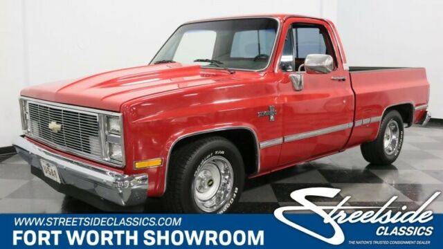 We get a lot of these clean mid-80s Chevy pickups, and they're always pleasant, clean machines. But every so often, one like this 1986 Chevrolet C10 Silverado shows up and smacks us around a bit. This recently rebuilt Box Chevy is every bit as clean and functional as the others, but it packs a snarling 383-inch stroker motor under the hood that makes it more muscle car than utilitarian hauler. While we tend to overlook trucks in... our everyday life, this C10 looks downright spectacular in its Apple Red livery. Maybe it's the way the smoke-tinted windows make it look sinister, or how aggressive the lowered and raked stance looks, but it seems sinister and clean all at once. It's pretty obvious that this one has been personal transportation since it was new, especially as a regular cab/short bed model, and most of its hauling was probably limited to personal gear and helping friends move. As a result, its bodywork is clean, smooth, and straight, with a great shine that still stands out at shows. Of course, things like the billet grille and cowl induction hood certainly help, not to mention the way the body sits on top of the Rallye wheels wrapped in fat tires. All the stock trim remains in place, too, so this isn't some custom piece of questionable taste, and nobody will know anything about it beyond what you want to show. Bright chrome bumpers are new and enhance the stock look, and it does carry a durable spray-in bed liner just in case you still want to use it as a truck. The stock bench seat interior gives nothing away, either. That's new black vinyl upholstery on the seat, fresh, plush carpets underneath, and brand new door panels on both sides. Options like R134a A/C, a tilt steering column, dual fuel tanks, and a sliding rear window make it a pleasure to drive even when you're not using that 383 to its full potential. An original-style wheel is still in place and in great shape, and because this is a column shift automatic and has power steering, it's a breeze to manage down the road. Better yet, the factory gauges were dumped in favor of a set of very cool digital instruments that fit into the original slots like they were born there. It also received an upgraded Pioneer AM/FM/CD stereo system that sounds great, as well as a set of heavy-duty Silverado floor mats that add a bit of fun to the all-business interior. All that's pretty nice, but the thing that got our attention with this one is the 383 cubic inch V8 under the hood. Complete with heavy-duty hardware like a Holley 4-barrel carburetor, aftermarket intake manifold, a lumpy camshaft, and long-tube headers, it runs like it's 800 pounds lighter than it is. It looks fairly stock, which is entirely the point, but the black open-element air cleaner replete with "383" decals and finned chrome valve covers tend to show off a bit and give away the secret. However, other gear looks bone stock, like the accessory drive, A/C system, wires and hoses, and other ancillary pieces. A stout TH400 3-speed automatic works hard behind the stroker motor, sending power to the original 10-bolt rear end that's filled with highway-friendly gears. The exhaust system uses turn-downs just behind the rear axle, so the aggressive soundtrack might give things away, but you can't argue with the spectacular sound. And those awesome Rallye wheels wrapped in thick 275/60/15 BFGoodrich white-letter radials do a great job finishing the killer look without going overboard. Nice truck? Absolutely. But if you're looking for something a little beyond merely "nice" then this C10 is what you've been looking for. Call today!