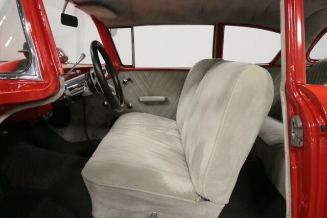 For a vintage car that you can get in and drive cross-country any time, it's hard to beat a '50s Chevy with a nice-running small block under the hood. This 1958 Chevrolet Delray 2-door is an excellent example of Chevy's 1-year-wonder, fully restored and ready to cruise for years to come. We'll resist the obvious "American Graffiti" references, but this is still one cool full-sized cruiser with lots of performance. Of course, the Chevrolet Red-Orange paint... job adds to the '50s cool factor, and it was professionally rendered using modern paint technology when it was repainted 10 years ago, so the shine is impressive. The sheetmetal is in great shape and quite straight, emphasizing the intricate contours of the rear quarters. Gaps are good all around the doors close with a reassuring solidity that only comes from good base stock, and a post car always feels more substantial. We like the limited brightwork on the Delray model, which lets the sheetmetal and slick monochrome paint speak for itself, a look that almost looks customized and turns heads when it's out in the wild. However, it's important to note that all the trim was replaced or restored during the restoration, including the dramatic polished stainless on top of the rear quarters, the enormous bumpers fore and aft that look better than new, that intricate grille with integrated running lights, along with all the smaller details like the mirrors, door handles, and those cool dual spot lights that are mounted on the cowl. We have hundreds of cars in the showroom, but somehow this flashy red Delray really stands out and gathers most of the crowds. Nice! A small fortune was spent inside on the handsome Dove Gray velour interior, which has a vintage look that seems right at home in this 1958 Chevy. The seats feature supportive foam underneath, making them all-day comfortable, and plush dark gray carpets add a bit of contrast to the light interior. Crisply rendered matching door panels have diagonal pleats for a custom look, and the dash was painted bright red to match the bodywork and tie everything together nicely. The original gauges are still in place and are joined by an A-pillar mounted tachometer and a couple auxiliary gauges under the dash, and an AAR retro-style Wonderbar AM/FM/AUX radio was fitted in the original location. A Grant GT steering wheel sits atop an Ididit tilt column, and the updated shifter manages the TH350 3-speed automatic transmission that lives below. The cabin shows very little wear (if any) and it's incredibly comfortable, so crank up the tunes and take this sucker to the coast. The trunk is impressively clean with neatly laid carpets, a covered spare, relocated battery box, and enough room for anything you'd need on a road trip. A lot of guys claim their cars can be driven anywhere, but this car actually delivers on the promise. With a strong, well-maintained 350 cubic inch V8 motor featuring an Edelbrock 4-barrel carburetor, a Weiand aluminum intake, and a serpentine belt system, it's the most reliable form of transportation since the horse. Chrome pieces like the new open-element air cleaner and finned valve covers make this an engine bay you'll be proud to show, while functional upgrades like power front disc brakes with a dual master cylinder, power steering, a full HEI system, and a TH350 3-speed automatic that spins a refurbished rear end filled with 3.55 gears that make it a pleasure to drive. Underneath it's solid and very clean thanks to a recent POR-15 treatment, with upgrades throughout the suspension including fresh control arms and a Hotchkis sway bar up front, boxed rear trailing arms out back, and new bushing, ball joints, Eaton Detroit springs, and KYB adjustable shocks all around. Recently installed and ceramic-coated FlowTech Ram's Horn exhaust manifolds feed a dual exhaust system that hugs the X-frame and uses performance Glasspack-style mufflers for an awesome sound from the burly small block. Polished Eagle Torque Thrust wheels finish the period hot rod look, and wear 225/70/15 blackwalls that really stuff the wheel wells nicely. Someone spent a ton of money on this car, creating something unique without going over the top. With excellent workmanship and not a lot of miles on the build, this Delray is ready to hit the road right now. Call today!