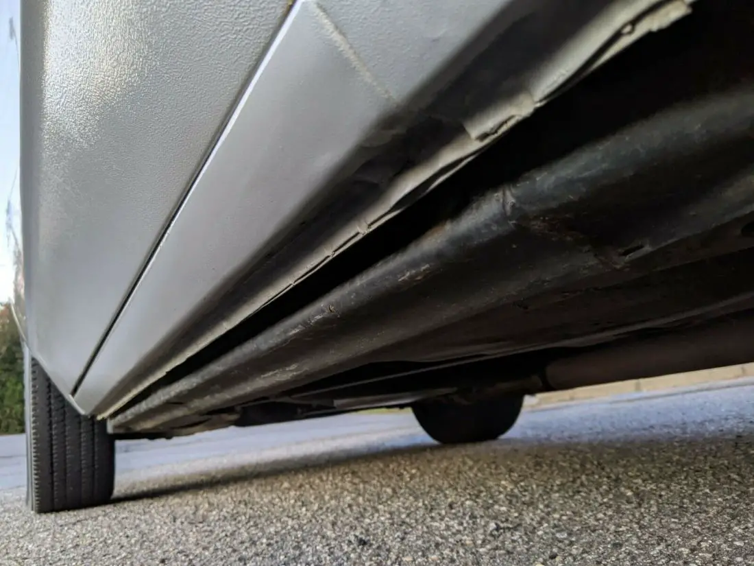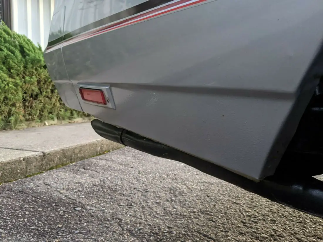 Exterior: Silver paint still shines like you wouldn't believe to be a 35 year old car, it still wears 95% of the original paint. Right quarter was scratched and refinished when it was new, did a great job, looks original. It now has a crease in it right above the stripe. One tiny ding in the front fender. I believe a good paint less dent guy could make both look 90% better without painting them. All the stripes are in super shape and not peeling.Underneath is amazingly rust free and dry. T-tops, to my knowledge, have never been out of this car at all. Again, she was elderly and I know for a fact she didn't take them out. Grille paint is chipping a little and a small scuff under the headlamp. 8 out of 10.