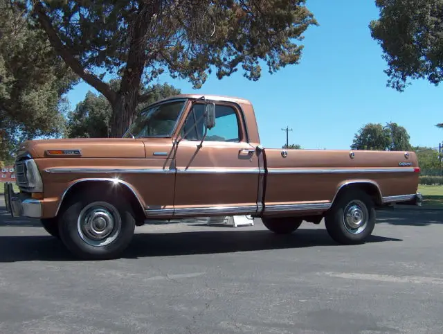 For sale: California rust free survivor 1972 Ford F-250 Camper Special Explorer. Nicely equipped for a 1972 with A/C, PS/PB, dual tanks and the Camper Special and Explorer packages. Purchased new from J.H. Sanders Ford in Clovis, California the Ford appears to have lived a life of leisure in the California High Desert. I purchased the truck earlier this year from a gentleman in Fresno who had purchased it a year or so earlier from a relative of the original owner. The Ford is Lifelong CA truck showing just over 78,000 miles on the odometer (the gentleman I purchased it from claimed the miles to be original and the truck shows that to be true)!. The word "survivor" is frequently abused here on Ebay, and adjectives like "amazing", "incredible" and "pristine" are hurled about often. This is the real deal.