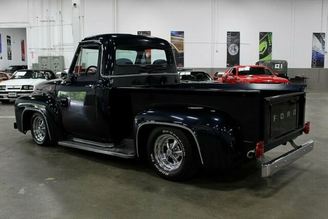 GR Auto Gallery is pleased to present this beautiful 1955 Ford F-100 restomod! This gorgeous F-100 comes in a stunning deep blue paint job complimented by a striking two tone blue and white interior. Powering the Ford is a 5.0 liter V8 motor mated to a stout automatic transmission with overdrive. The restoration was completed professionally to include the drivetrain, steering, rear end and much much more. Additional features include 4-wheel power disc brakes, power windows, power locks, working heat,... A/C and more. If you're in the market for a stylish classic that has all the bells and whistles of a modern truck, this F-100 is the one for you. Please call or email us for more information. The Ford F-Series was redesigned by Ford for 1953 with a more integrated look. The pickups also obtained their widely familiar names: The F-1 now became the F-100, the F-2 and F-3 now became the F-250, and the F-4 now became the 1-ton F-350. Optional interior amenities were new, including a dome light, lighter, arm rests, sun visors and a radio. On March 13, 1953, the Ford-O-Matic automatic transmission became an option. The 1954 F-100 was the last year for the flathead engine in the US. Models in Canada, however, the Mercury M-Series, retained the flathead. 1954-55 saw the introduction of the new 239 CID overhead valve Y-block V8, dubbed "Power King."