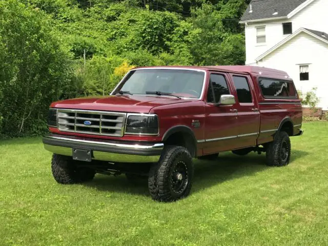 Super clean excellent condition. 1992 Ford F350 XLT Centurion. 460ci (7.5L)V8 engine. E4OD transmission. 4 wheel drive. 9200 lb GWV. 4 door, 8 foot bed with Jeraco camper style cap. LT285/75R16 Goodyear Duratrac LRE tires with Method wheels. Dual 19 gallon fuel tanks replaced several years ago. Front captain's chairs (drivers seat splitting at seam). Centurion's signature hardwood center console modified to accommodate travel cups, cell phones and tablets. Installed multiple USB ports in console. Kenwood stereo. Blue LED dash lighting. Couple minor cracks in dash panel. Tinted windows including cap. Front power windows and door locks. Smoked / tinted head and tail lights. Lucerne 8" drop rear bumper with 2" receiver hitch. Voyager brake controller. 7 pin round, flat pin (RV style) trailer plug. Double sliding windows between rear of cab and front of cab. Cap has side sliding windows. Exempt from emissions in CT. Removed cap and bed, replaced both fuel tanks and straps. Needle scales, primed, and painted frame. Frame has had "oil baths" each year. Painted entire vehicle. 2 new fenders. New tail gate. New front bumper. New Cat. back exhaust including cat.