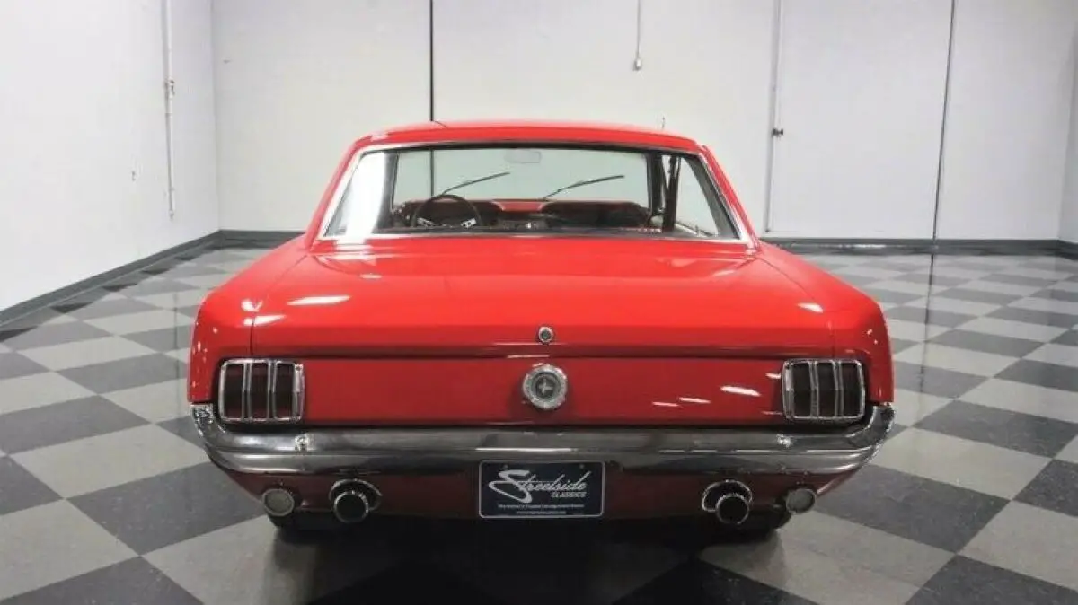 This is a first-year Mustang, and so they were years away from putting the 302 V8 under the hood. But since it fits just as nicely as the other V8s, they give this one the upgrade. This full package was done with driving in mind. So it's not only added power, but also good hoses, belts, and a newer distributor. It all makes for a strong-running V8 that makes a sweet sound out of the dual exhaust. You also have a three-speed automatic transmission, power steering, power brakes w/newer booster, front discs, and wide BF Goodrich radial T/A tires. So it's easy to take this coupe out for a fun time - exactly what a red Mustang is all about!